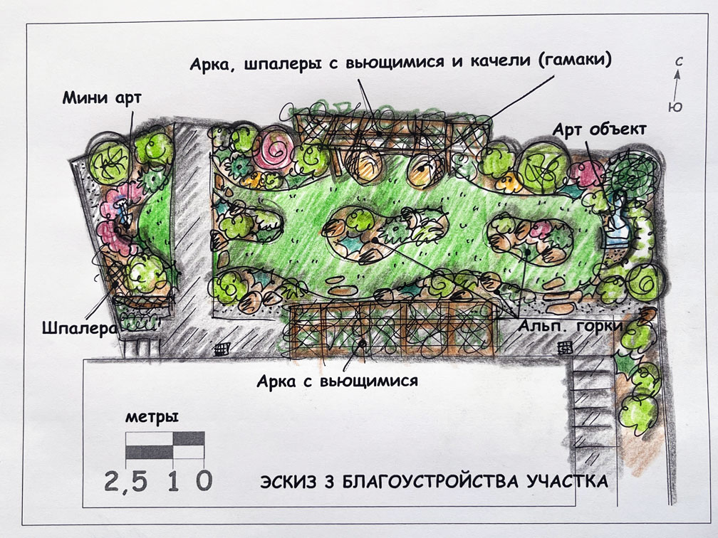 Дизайн палисадника на участке Эскиз озеленения участкамкр.Покровка г.Красноярск | ||||||||||||||||